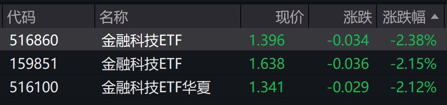 受盘面影响,跟踪中证金融科技主题指数的ETF跌超2%。