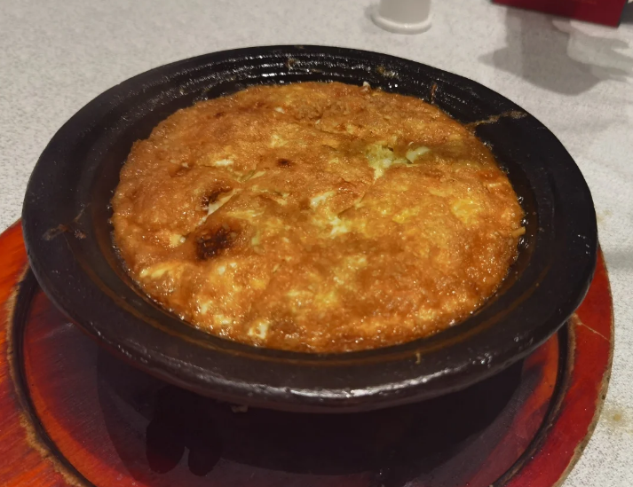 郑州铁锅蛋(又称三鲜铁锅蛋)是河南传统名菜,属于豫菜代表之一,具有悠久历史和独特工艺。其口感鲜嫩软香,色泽红黄,油润明亮,因加入海参、鱿鱼、海米等“三鲜”食材,经铁锅上下烘烤,蛋浆膨松如菊花,淋上香醋、佐以姜末,风味近似蟹黄,故有“赛蟹黄”之称。这道菜在郑州老字号餐馆如豫满楼等地表现突出,被列为非遗美食和必吃名菜。