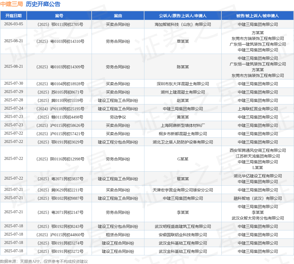 本站消息,根据天眼查APP显示火山策略,近日公布了一则中建三局集团有限公司作为被告/被上诉人的开庭公告火山策略,详细内容如下: