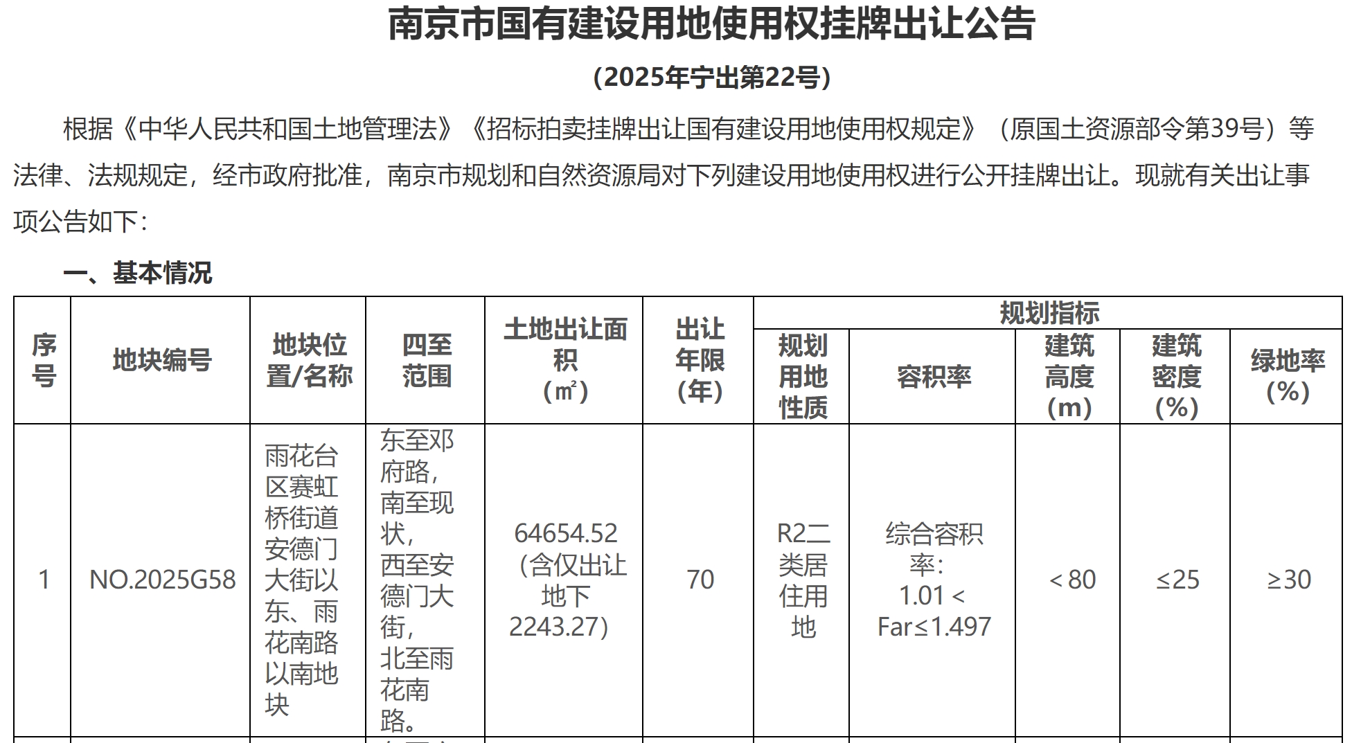 G58地块为雨花台区赛虹桥街道安德门大街以东、雨花南路以南地块。本地块由地块一、地块二组成美林资管,其中:地块一用地面积23771.55㎡,1.01