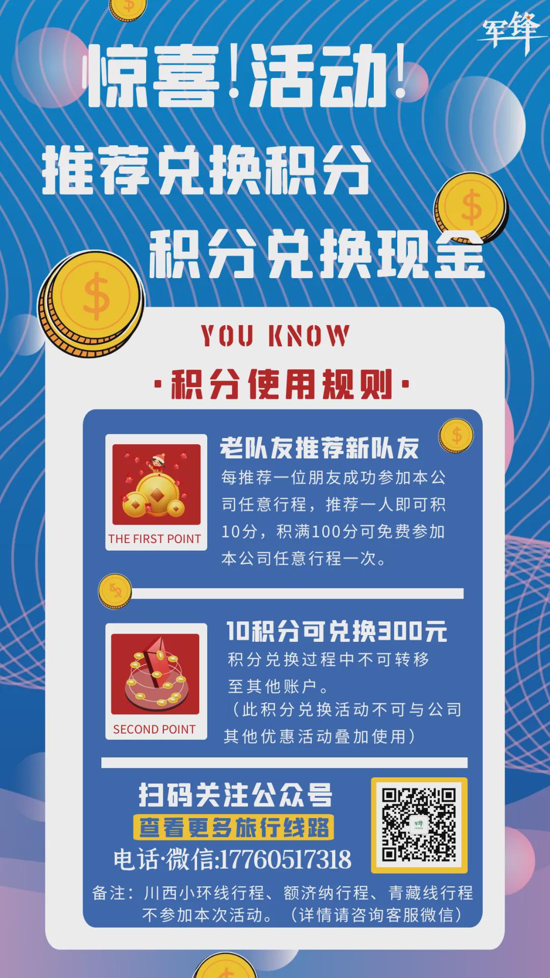 积满100分可免费参加本公司任意行程一次