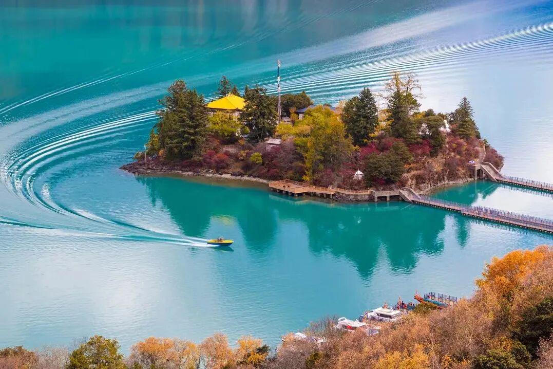 你将走上被彩林包裹的的湖心小岛