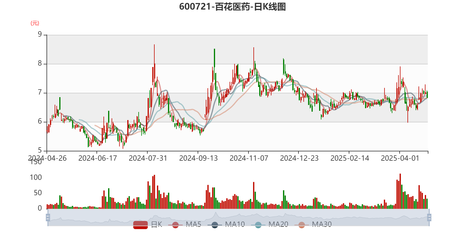 以4月25日收盘价计算,百花医药目前市盈率(TTM)约为63.17倍,市净率(LF)约3.36倍,市销率(TTM)约6.7倍。