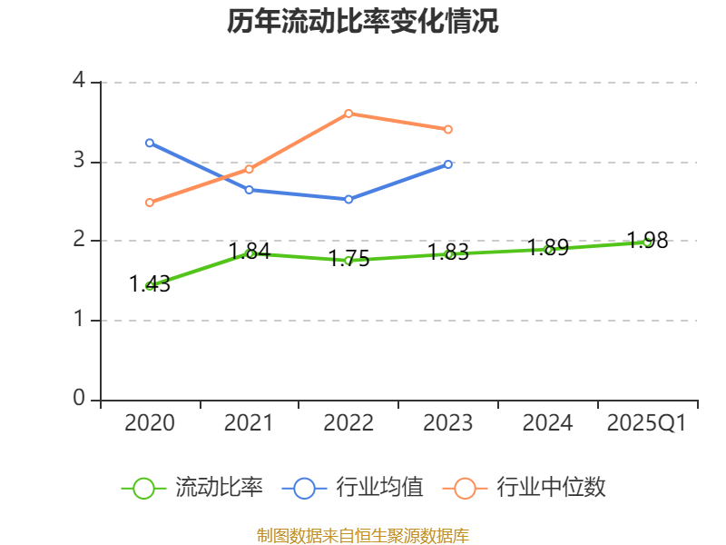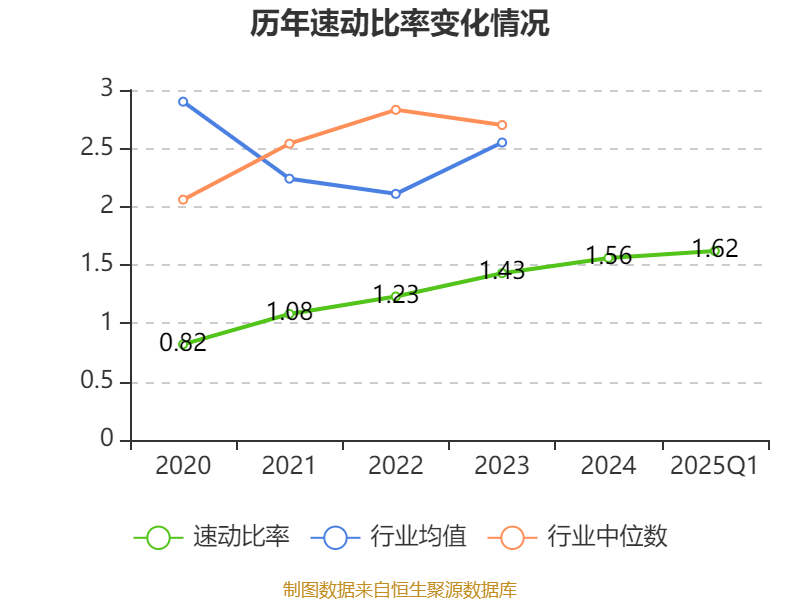 2025年第一季度,公司流动比率为1.98,速动比率为1.62。