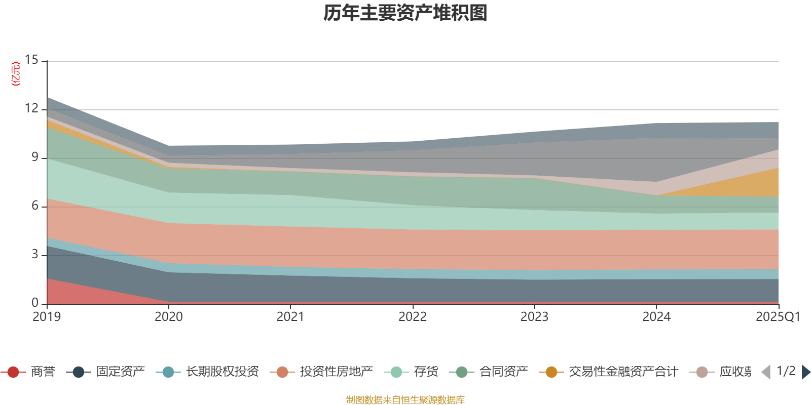 资产重大变化方面,截至2025年一季度末,公司货币资金较上年末减少75.15%,占公司总资产比重下降18.38个百分点;交易性金融资产合计占公司总资产的15.86%,上年末为0;应收票据及应收账款较上年末增加32.14%,占公司总资产比重上升2.38个百分点;合同资产较上年末减少10.67%,占公司总资产比重下降1.12个百分点。