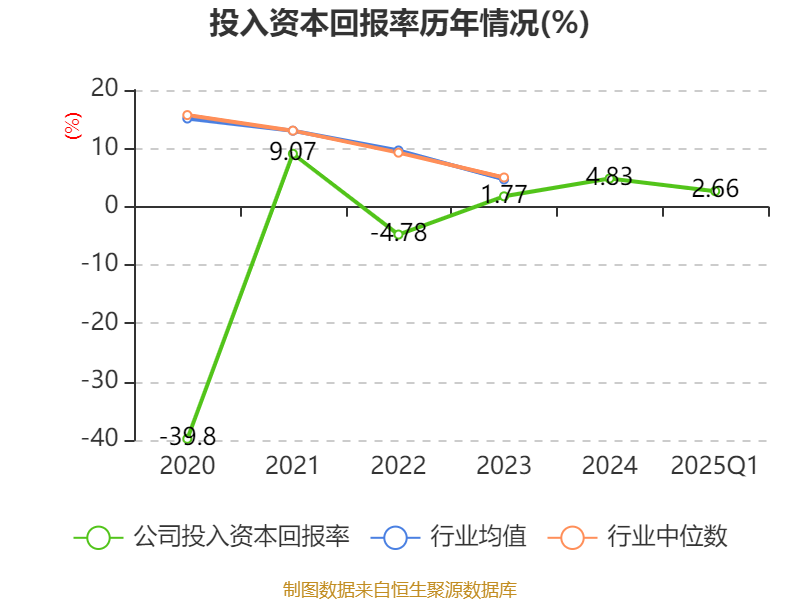 盈利能力方面, 2025年一季度公司加权平均净资产收益率为2.69%,同比下降0.19个百分点。公司2025年第一季度投入资本回报率为2.66%,较上年同期下降0.17个百分点。