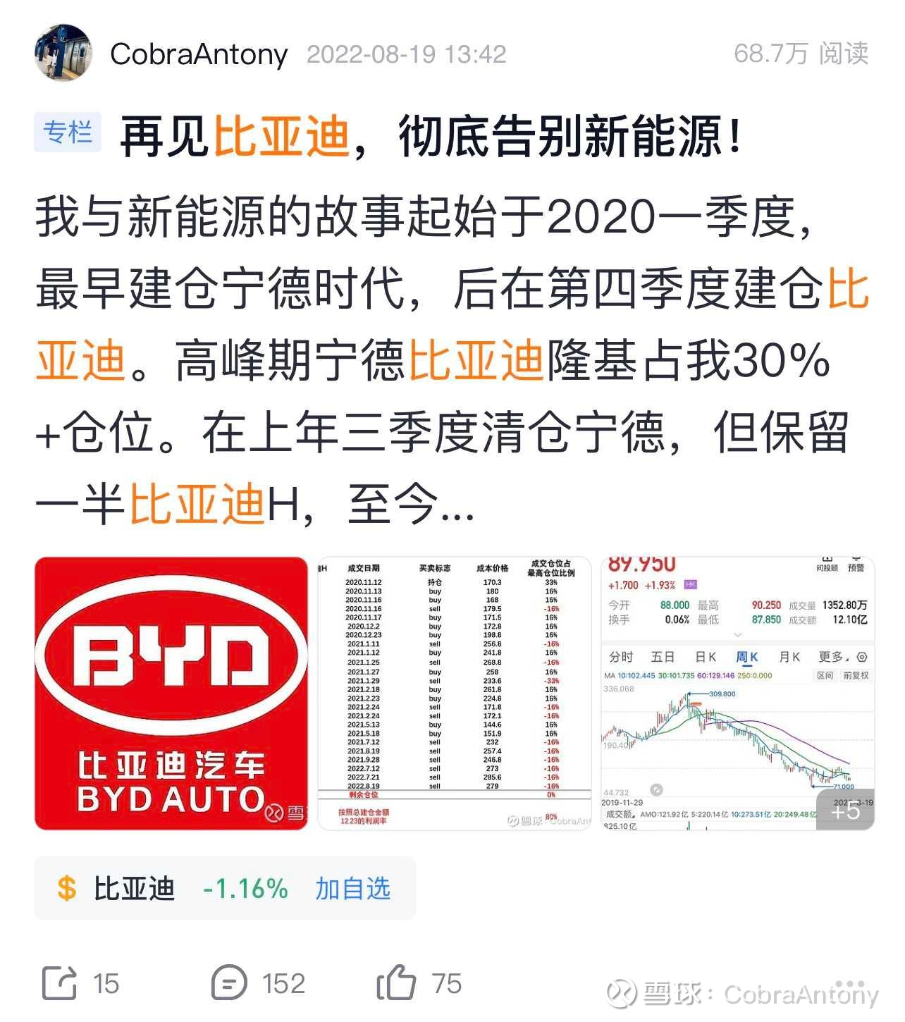 但是2019年到2020年开始新能源投资是比较好的机会。2015年它属于一个概念的时候,没办法看到实际的发展趋势。但2019年基本上就成型了,可以说是从一个概念迈上了一个成长的阶段。那就是一个非常好的介入点。我在宁德时代, 比亚迪和小米都赚了不少的利润。