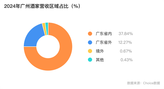 2024年广州酒家月饼营收实现16.4亿元,同比-1.95%,尽管这几年受制于新式月饼竞争加大导致公司营收增速明显放缓,但公司整体月饼营收稳健,代表其凭借深厚的历史积淀、粤菜文化底蕴、差异化产品与服务,获得了市场和消费者的广泛认可。区域方面,2024年广州酒家在广东省内营收占比达到73.9%,其在广东省的认可度较高,区域性强。