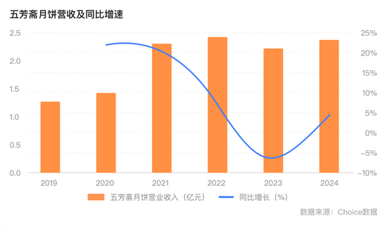 五芳斋为了打出差异化市场,也适时推出江南口味的四层流心糯月饼,主打好吃又低糖,聚焦健康食材,新增杨枝甘露、蓝莓、燕窝等多种年轻消费者喜爱的口味。伴随着新品创新,五芳斋的月饼营收实现了稳健上涨,2024年公司月饼营收实现2.36亿元,同比增长3.51%,在一系列传统月饼的收入下滑中表现优异。