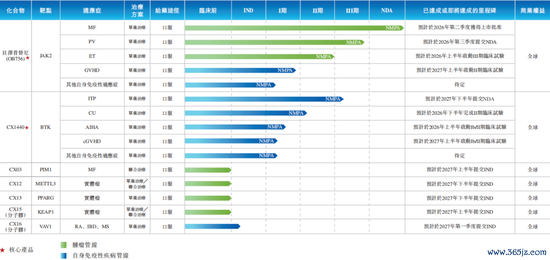 另一款核心产品CX1440,也即将商业化,其用于治疗免疫性血小板减少症(ITP)的Ⅲ期临床试验已启动,并预计将于2027年下半年提交该适应症的NDA,具备同类最佳潜力的BTK选择性抑制剂。