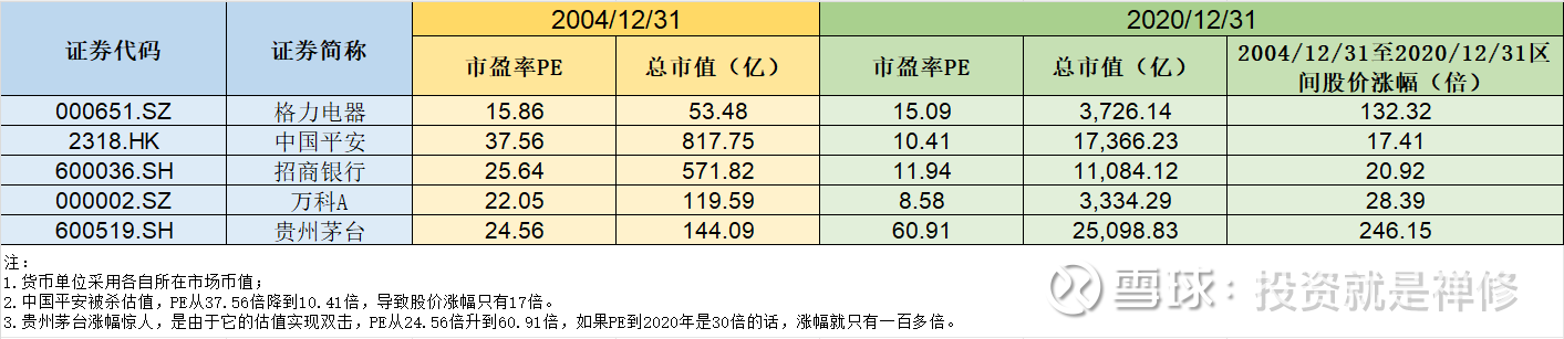 由于许多企业上市时间是2000年之后,简单统计一下,由2004年至2020年期间,这些符合当年时代趋势的股票涨幅都很惊人: